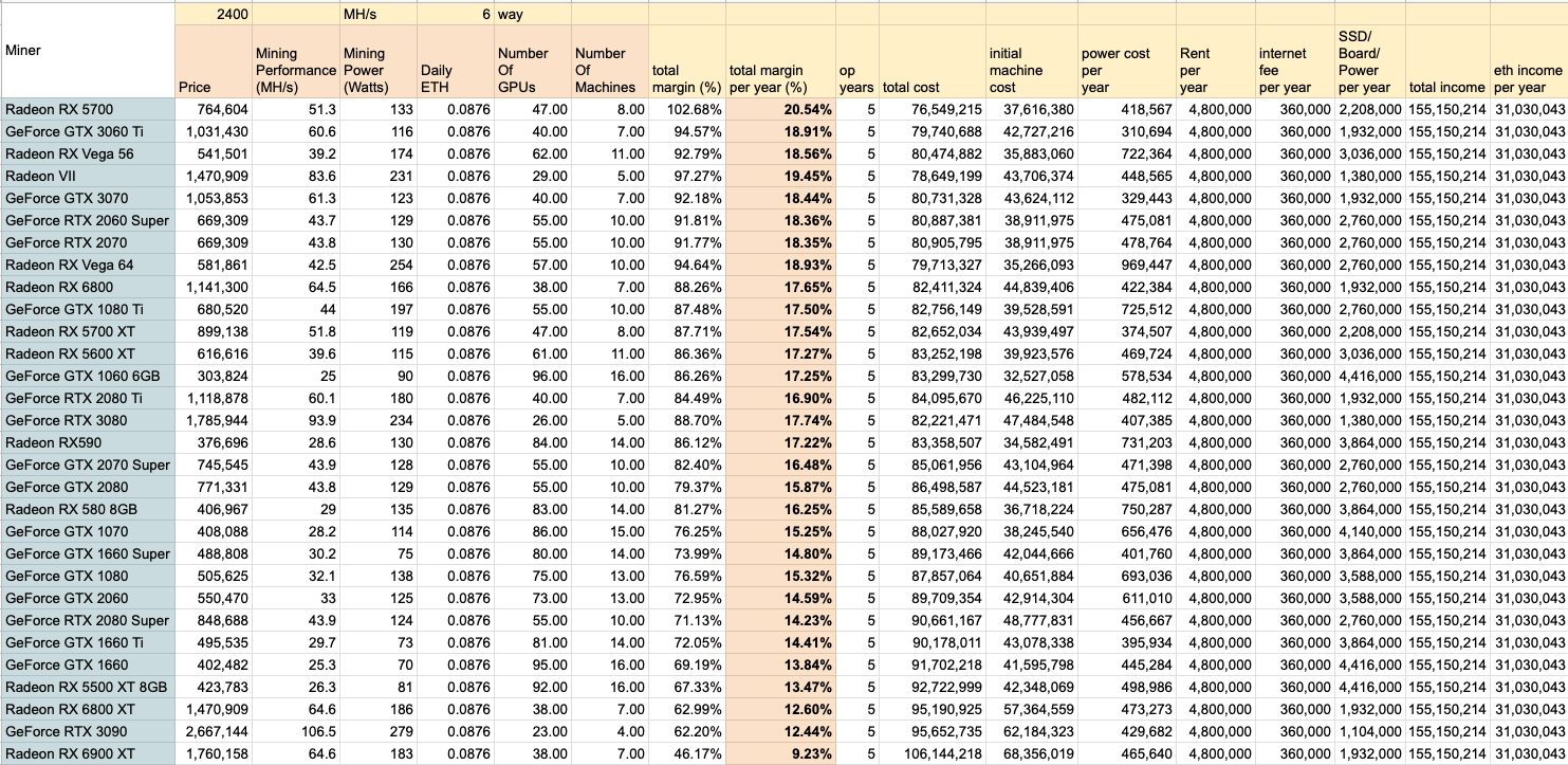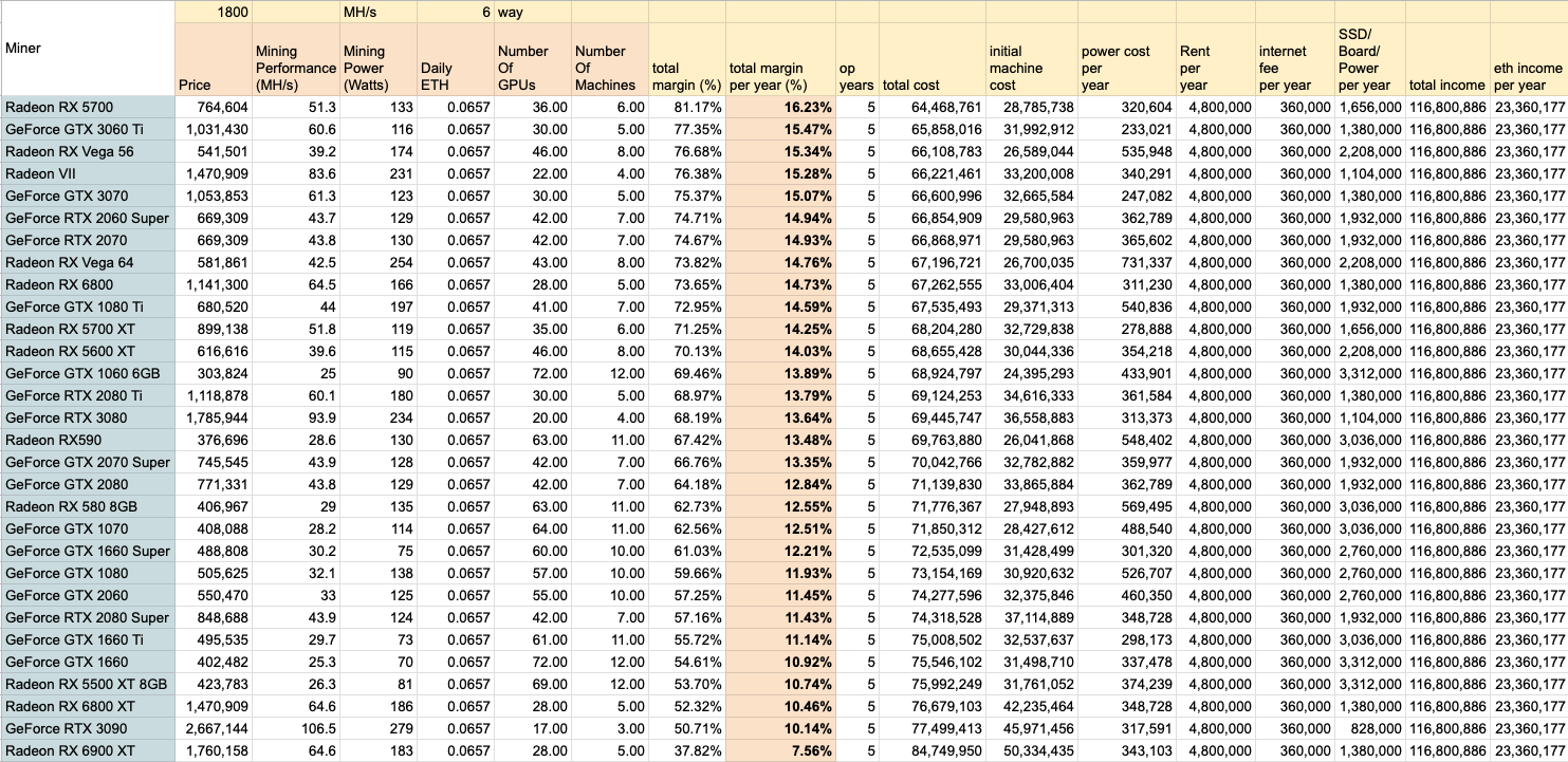 2. GPU와 각 마이너머신당 들어가는 갯수를 따로 계산해서 소모품 비용을 비슷하게 예측해보려고 했음